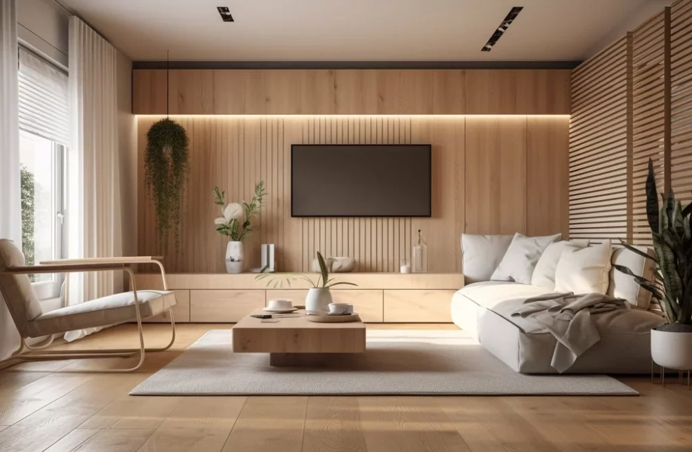 На стенах популярны декоративные штукатурки, деревянные панели, пробковые покрытия и натуральный камень. Такие решения создают эффект текстуры, добавляют интерьеру глубину и делают его визуально более «живым». Экологичность материалов также важна для покупателей, заботящихся о здоровье и чистоте воздуха в помещении.